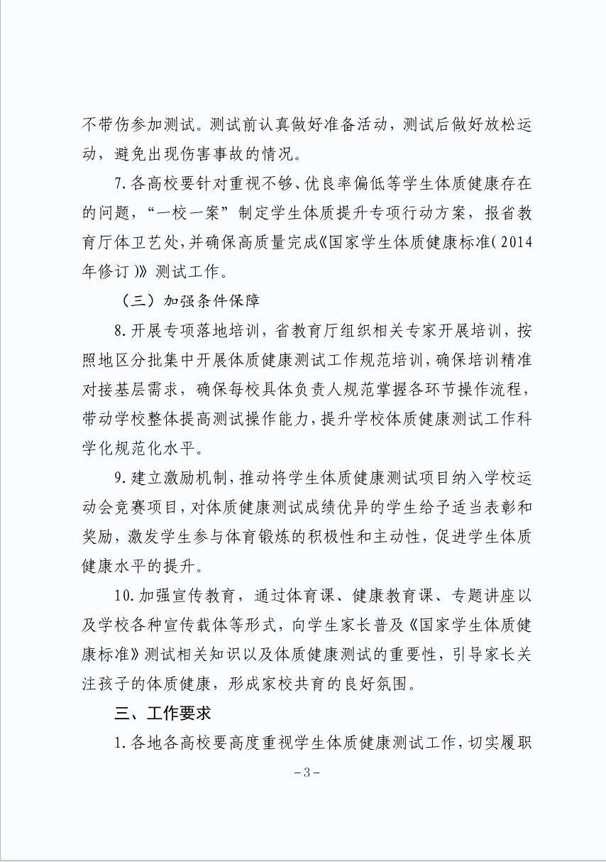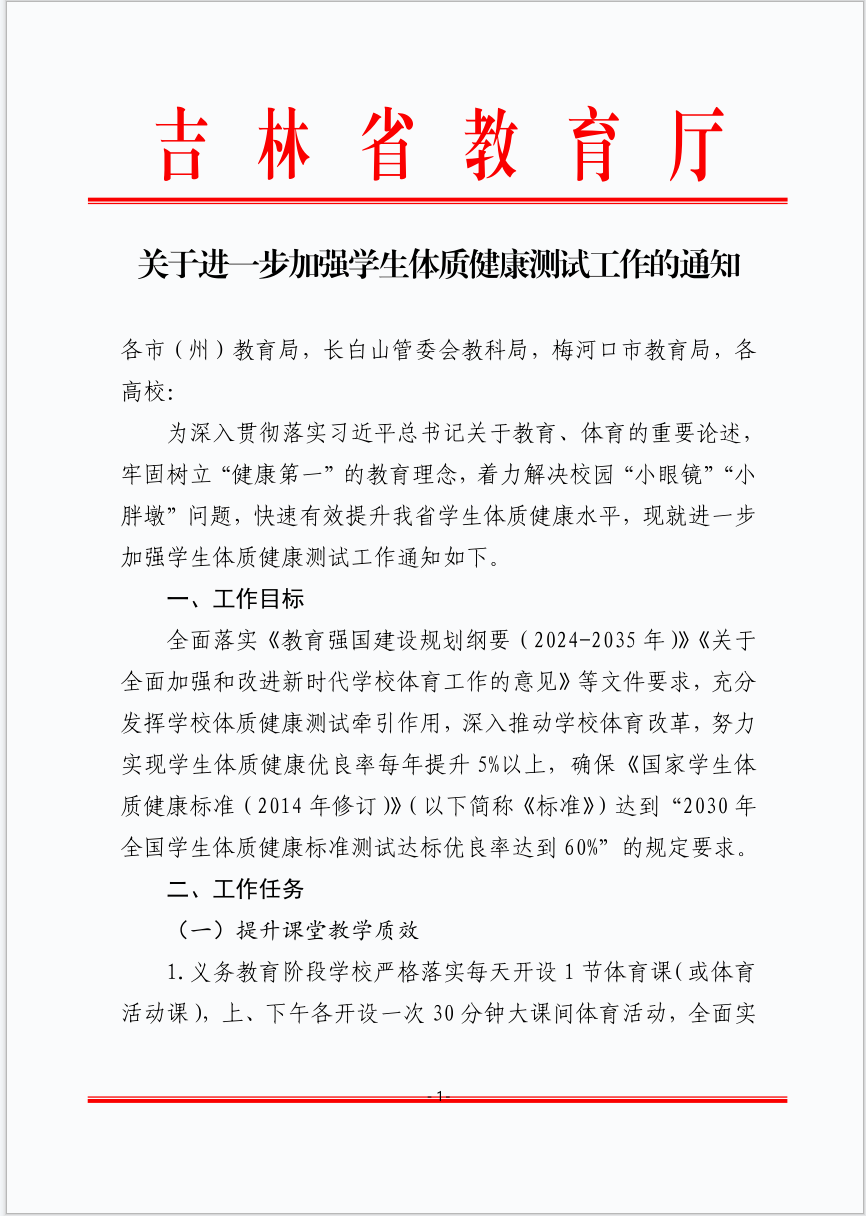 吉林省教育厅关于进一步加强学生体质健康测试工作的通知